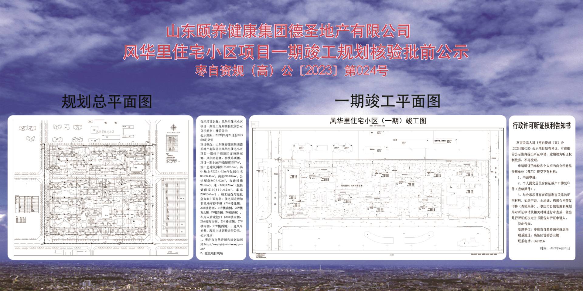 山东颐养健康集团德圣地产有限公司风华里住宅小区项目一期竣工规划核验批前公示