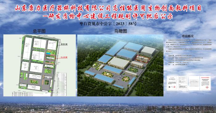 山东康力医疗器械科技有限公司高性能医用生物创面敷料项目-研发质检中心建设工程规划许可批后公示