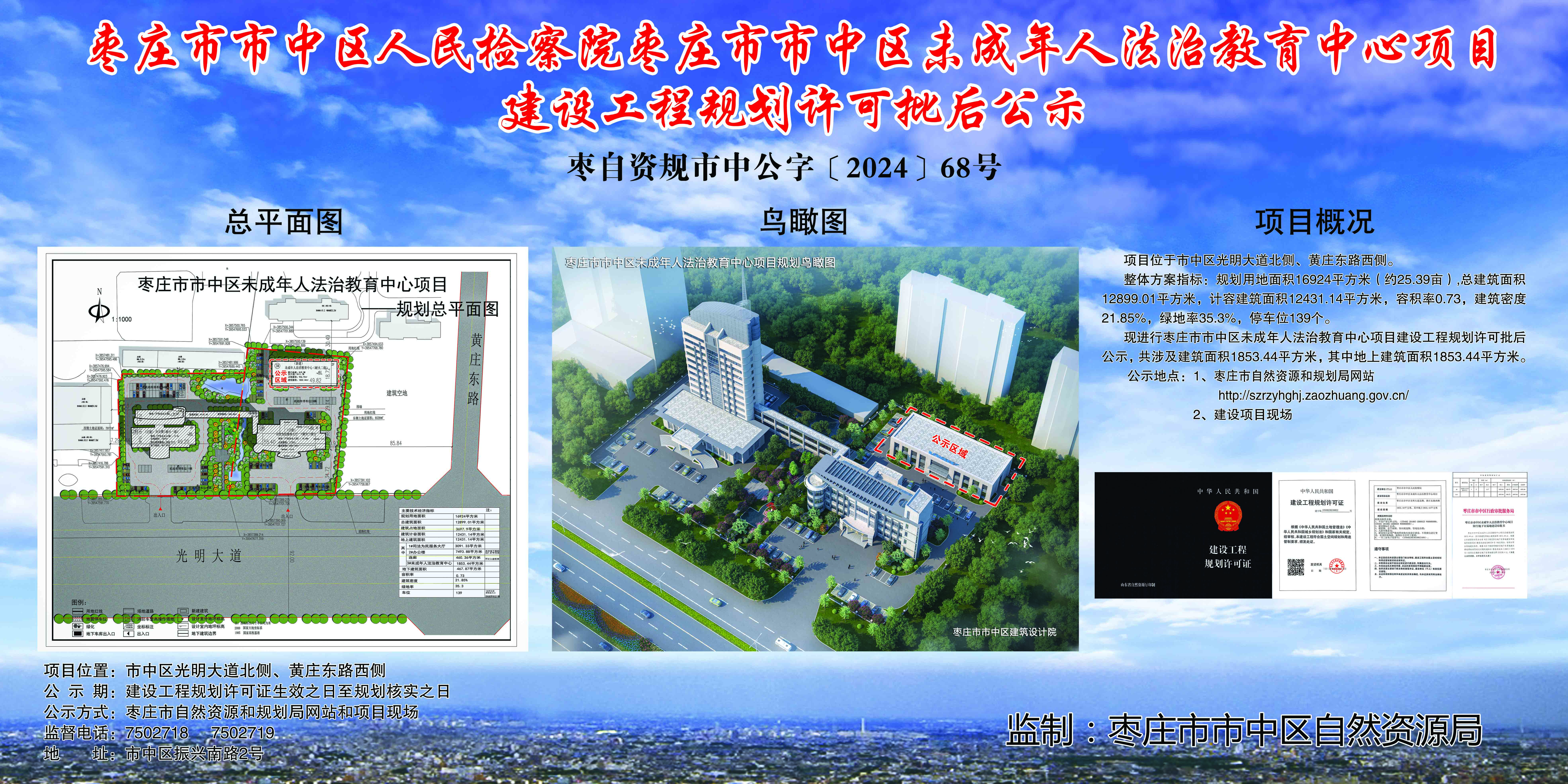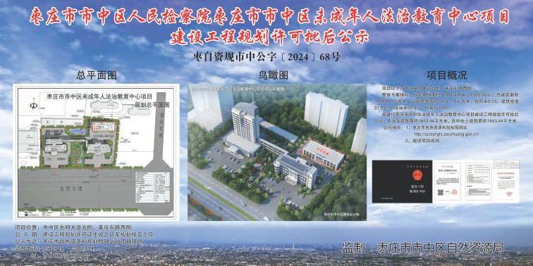 公示项目名称:枣庄市市中区未成年人法治教育中心项目建设工程规划许可批后公示