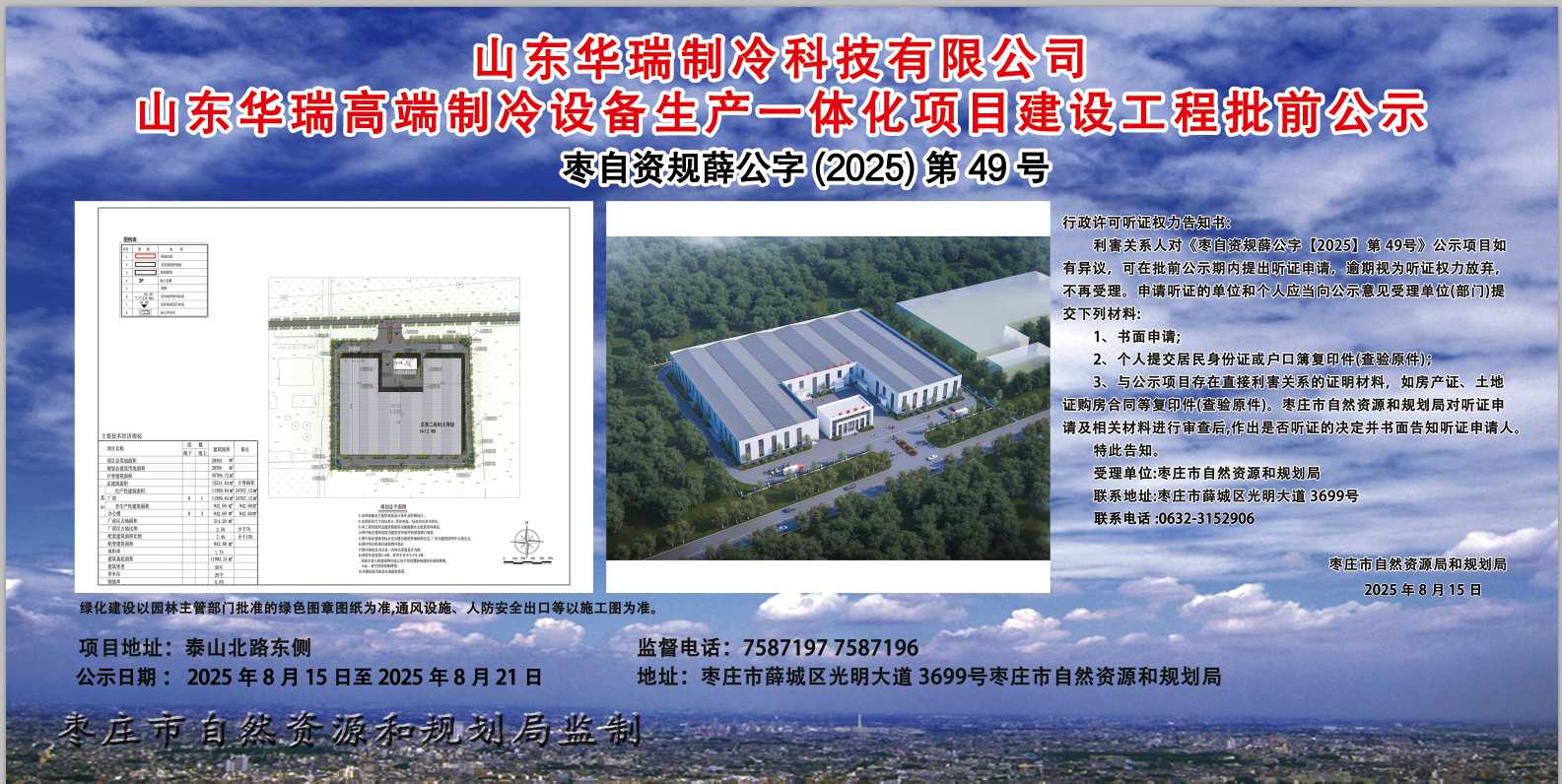 山东华瑞高端制冷设备生产一体化项目建设工程批前公示