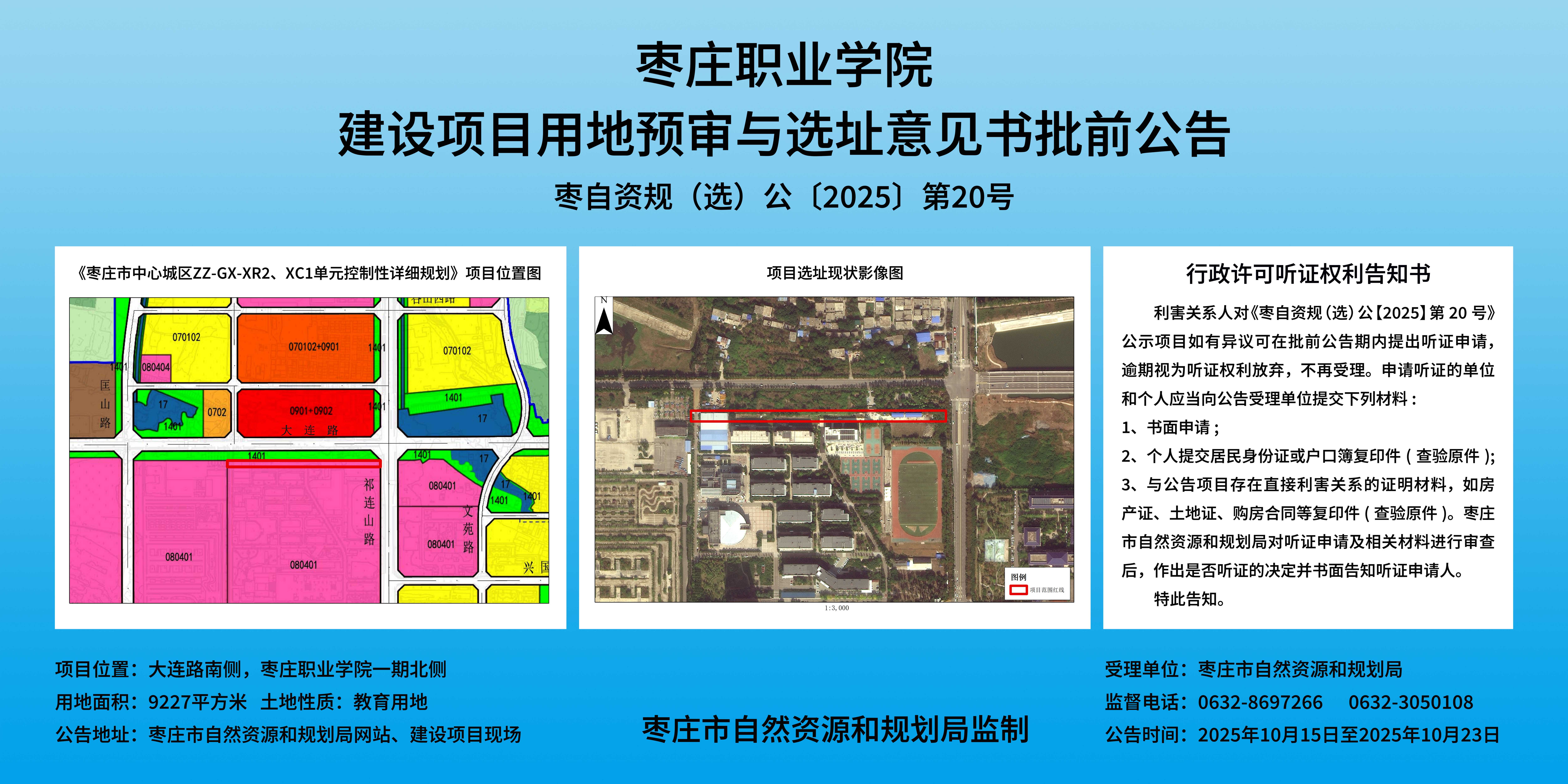 枣庄职业学院建设项目用地预审与选址意见书批前公告