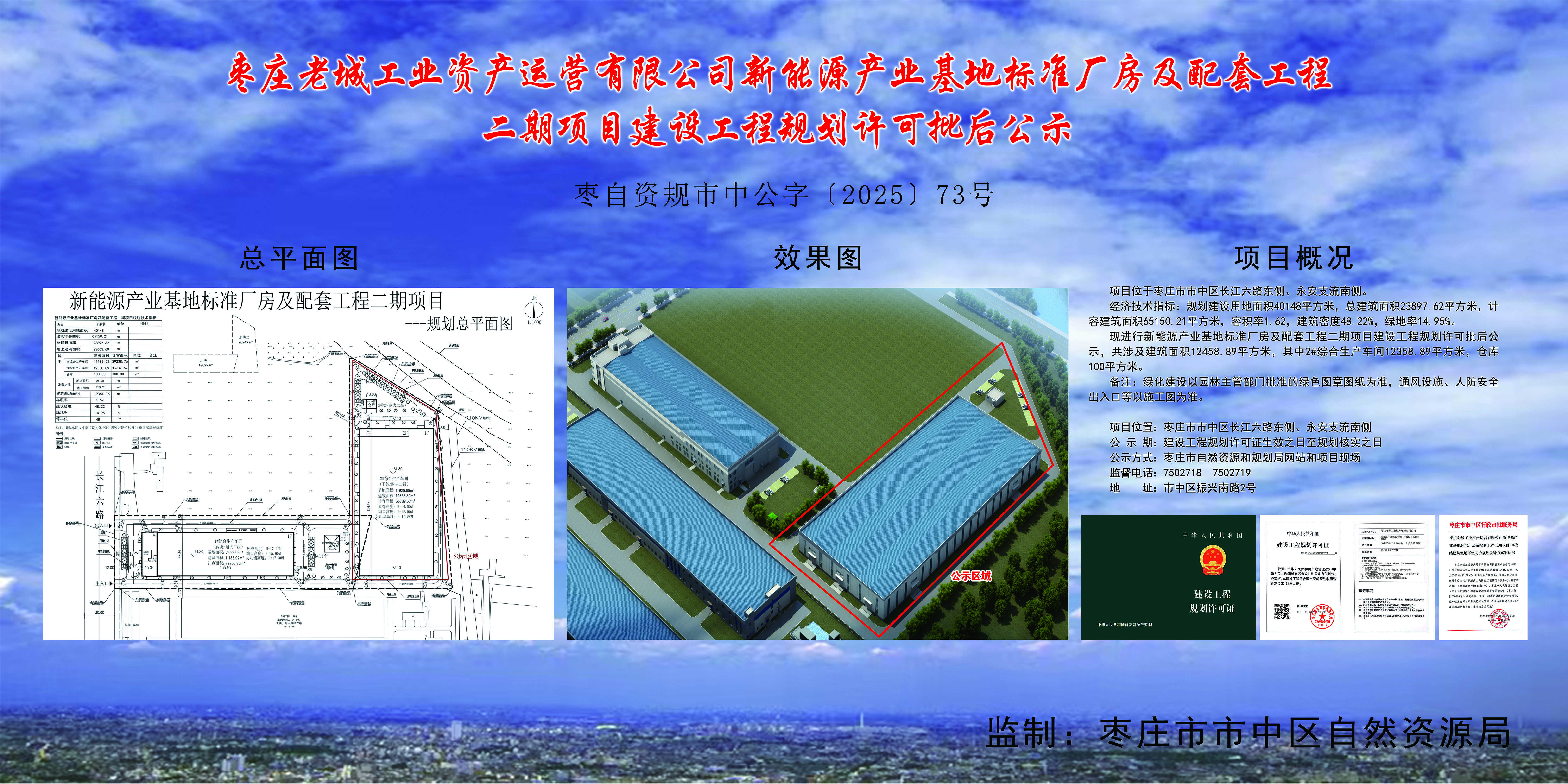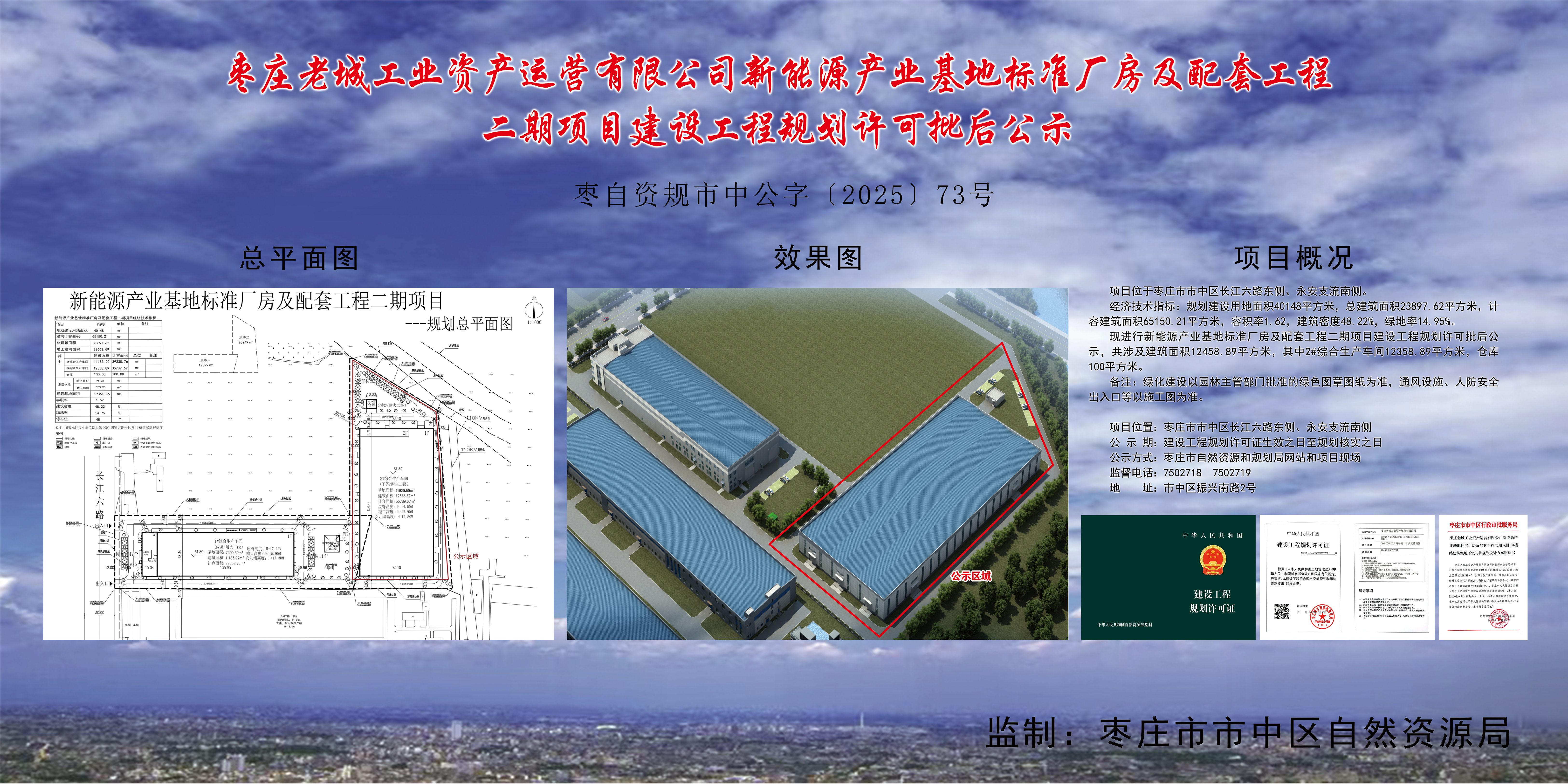公示项目名称:新能源产业基地标准厂房及配套工程二期项目建设工程规划许可批后公示