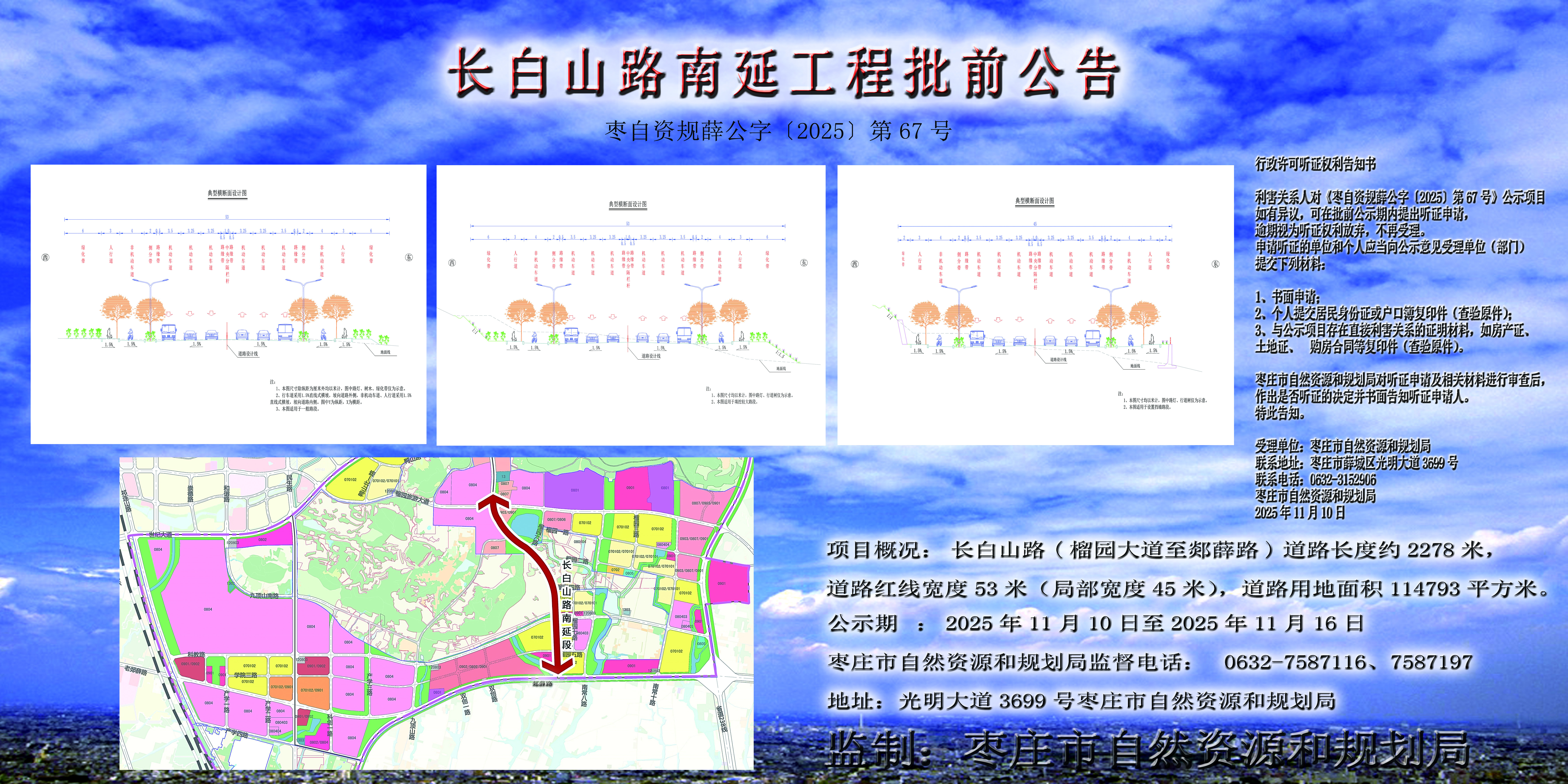 项目位置:项目概况: 长白山路(榴园大道至郯薛路)道路长度约2278米,道路红线宽度53米(局部宽度45米),道路用地面积114793平方米。