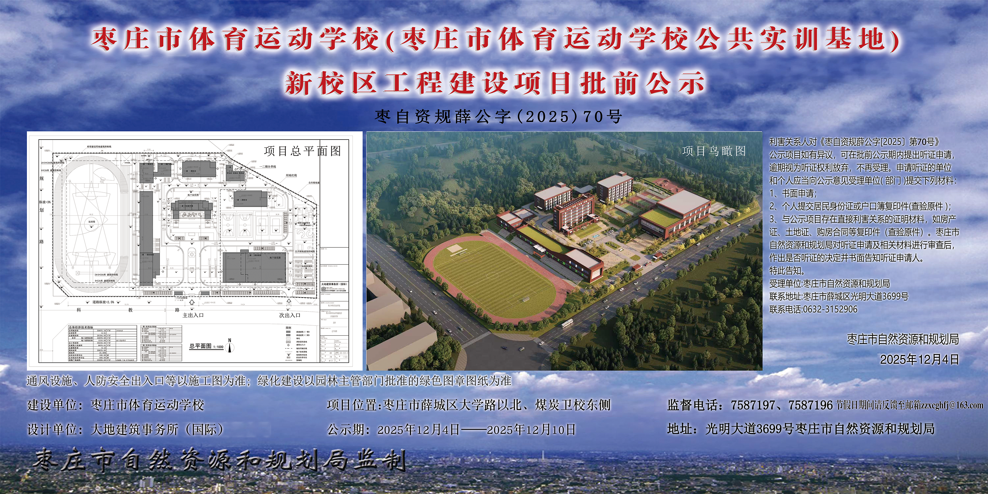 公示项目名称:枣庄市体育运动学校(枣庄市体育运动学校公共实训基地)新校区工程建设项目批前公示