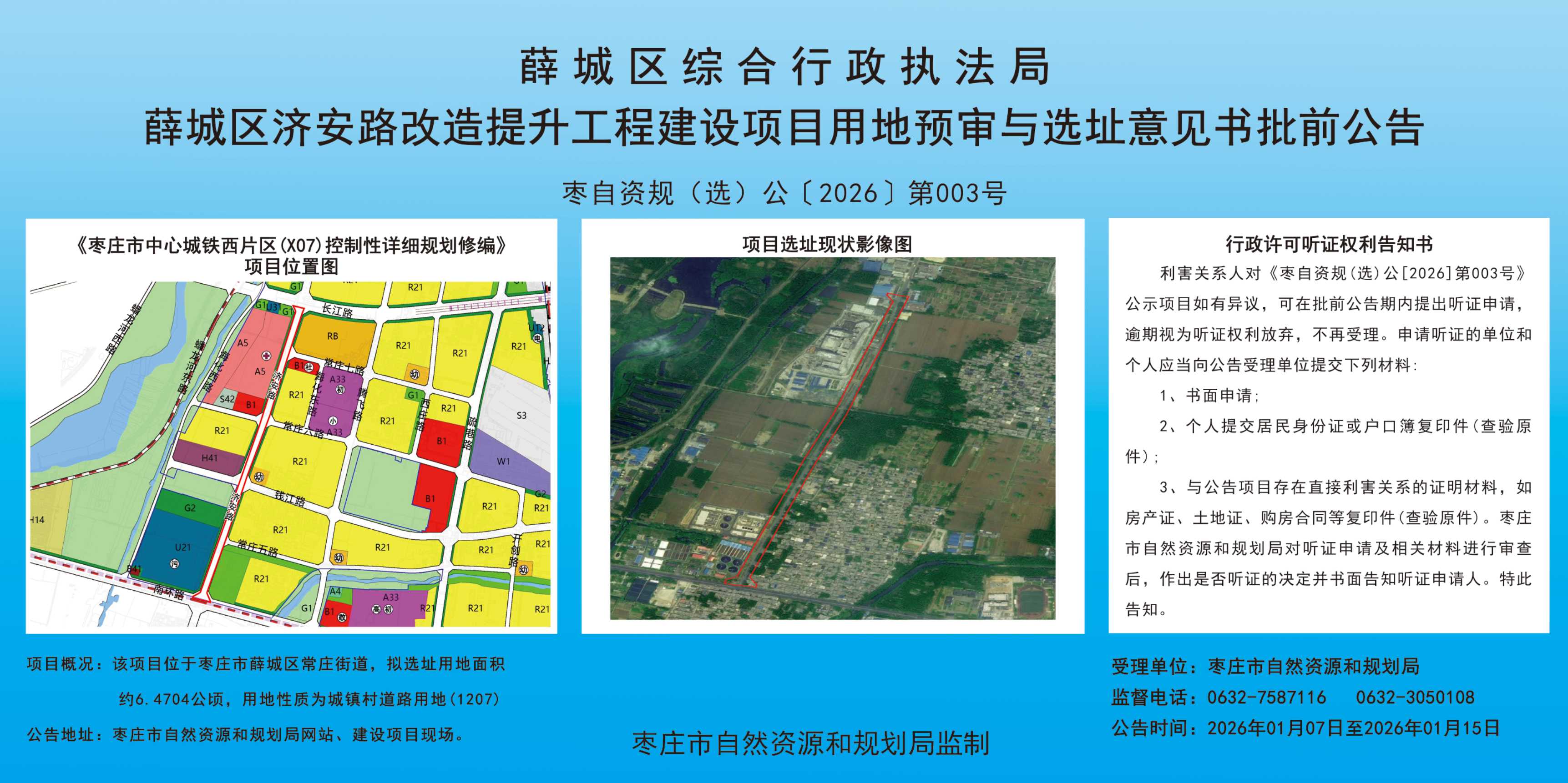 薛城区济安路改造提升工程建设项目用地预审与选址意见书批前公告
