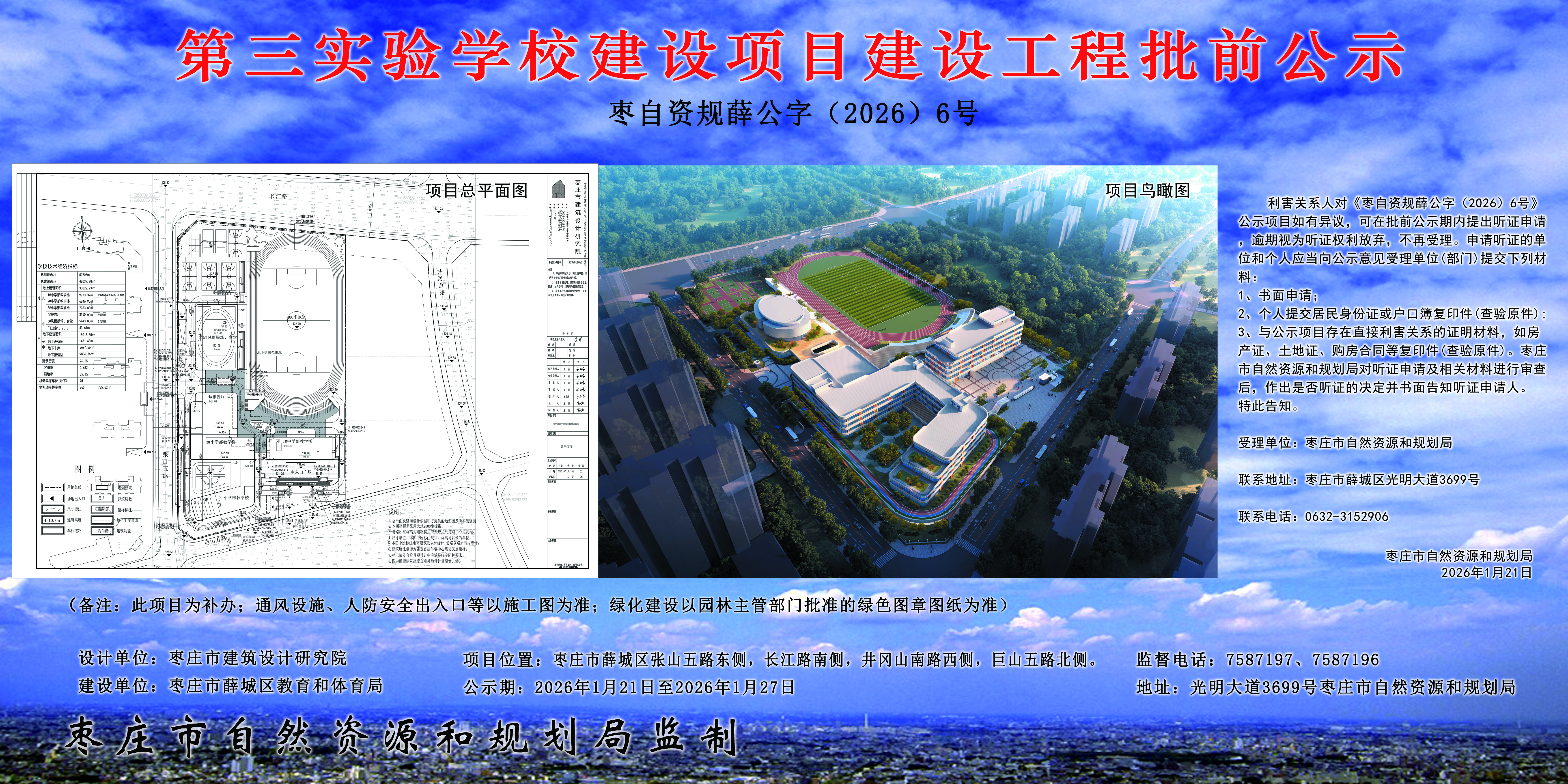 公示项目名称:枣庄市第三实验学校建设项目建设工程批前公示