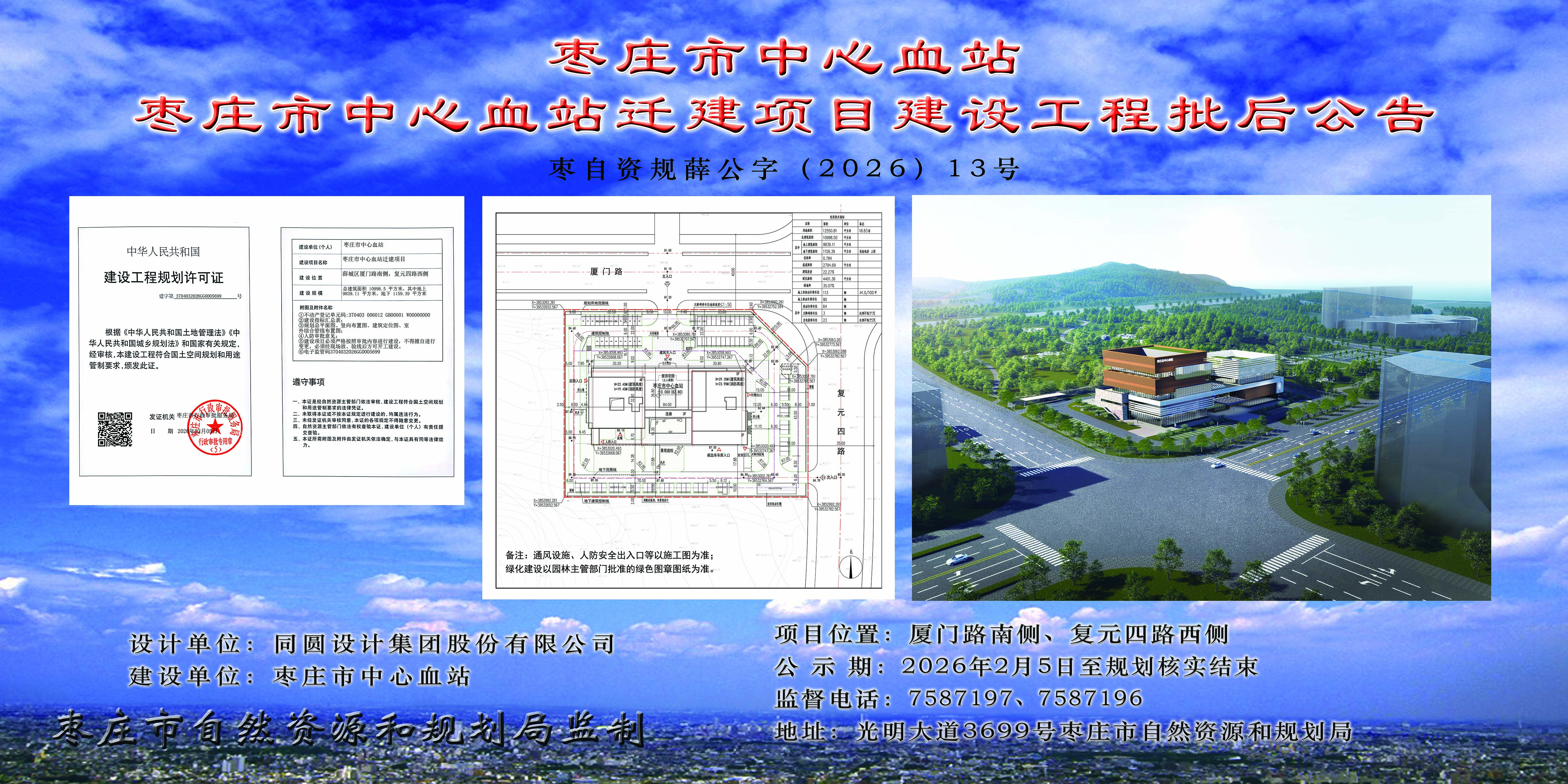 公示项目名称:枣庄市中心血站迁建项目建设工程批后公告