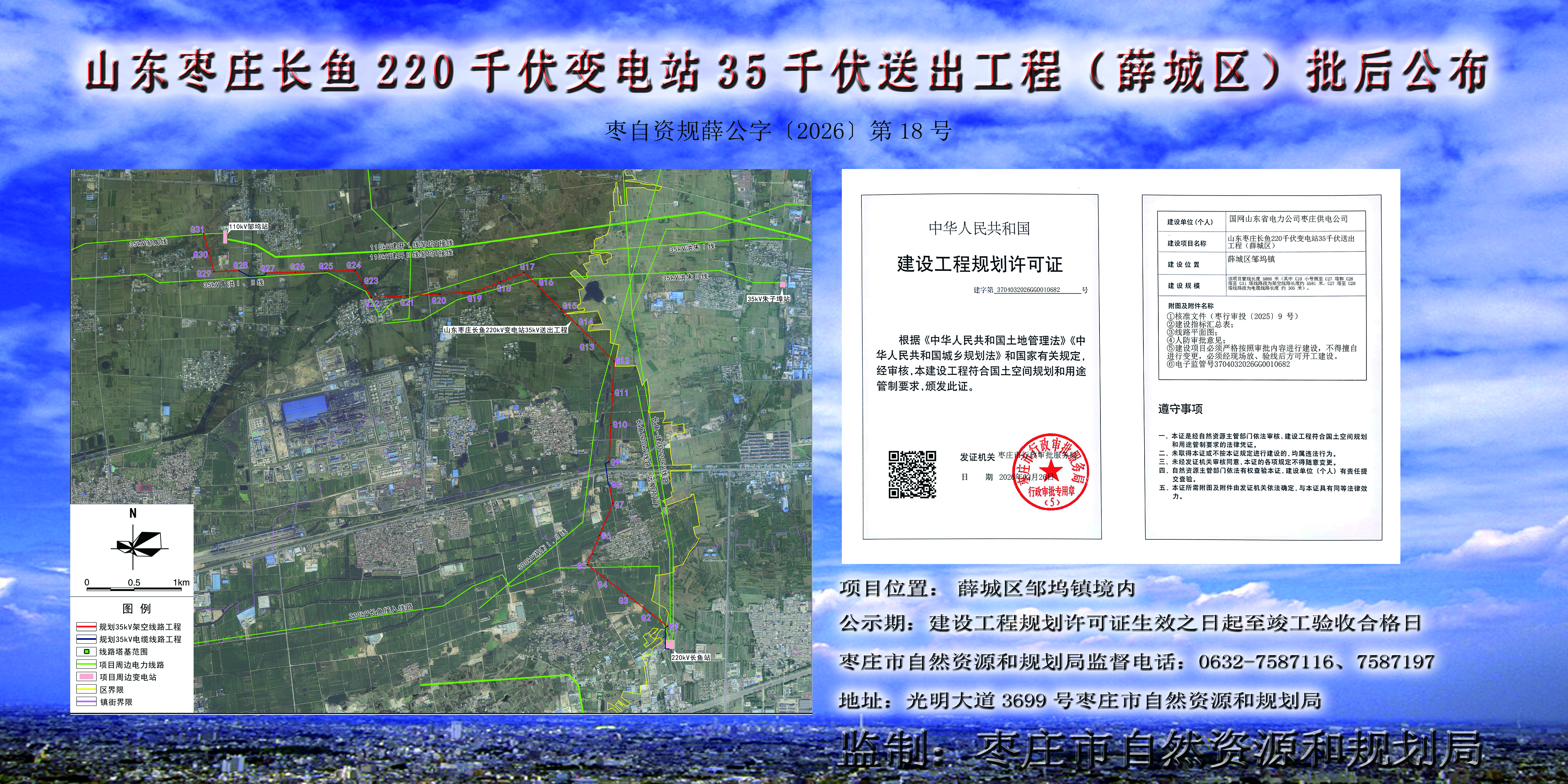 山东枣庄长鱼220千伏变电站35千伏送出工程(薛城区)批后公布