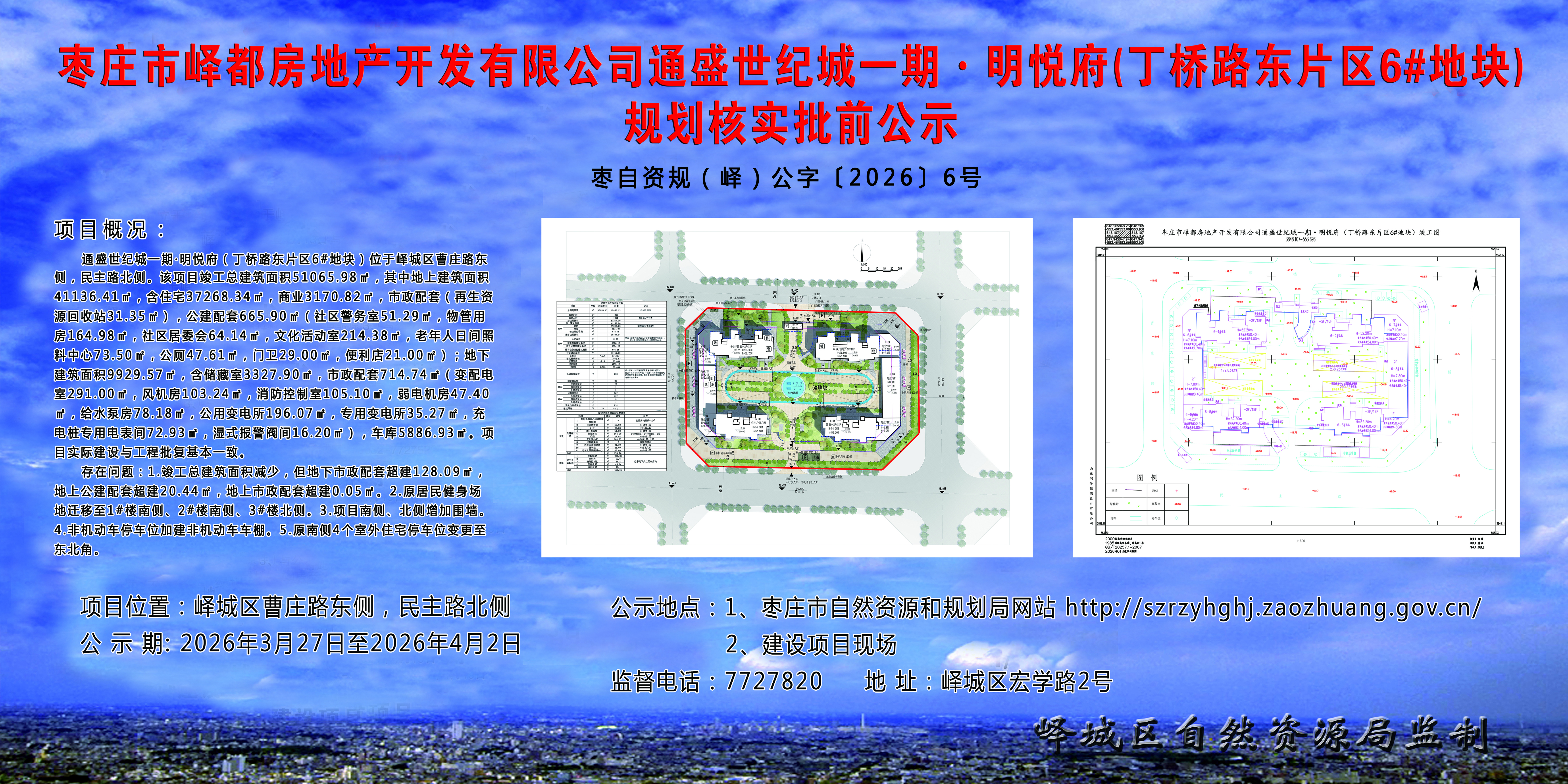 公示项目名称:枣庄市峄都房地产开发有限公司通盛世纪城一期·明悦府(丁桥路东片区6#地块)规划核实批前公示