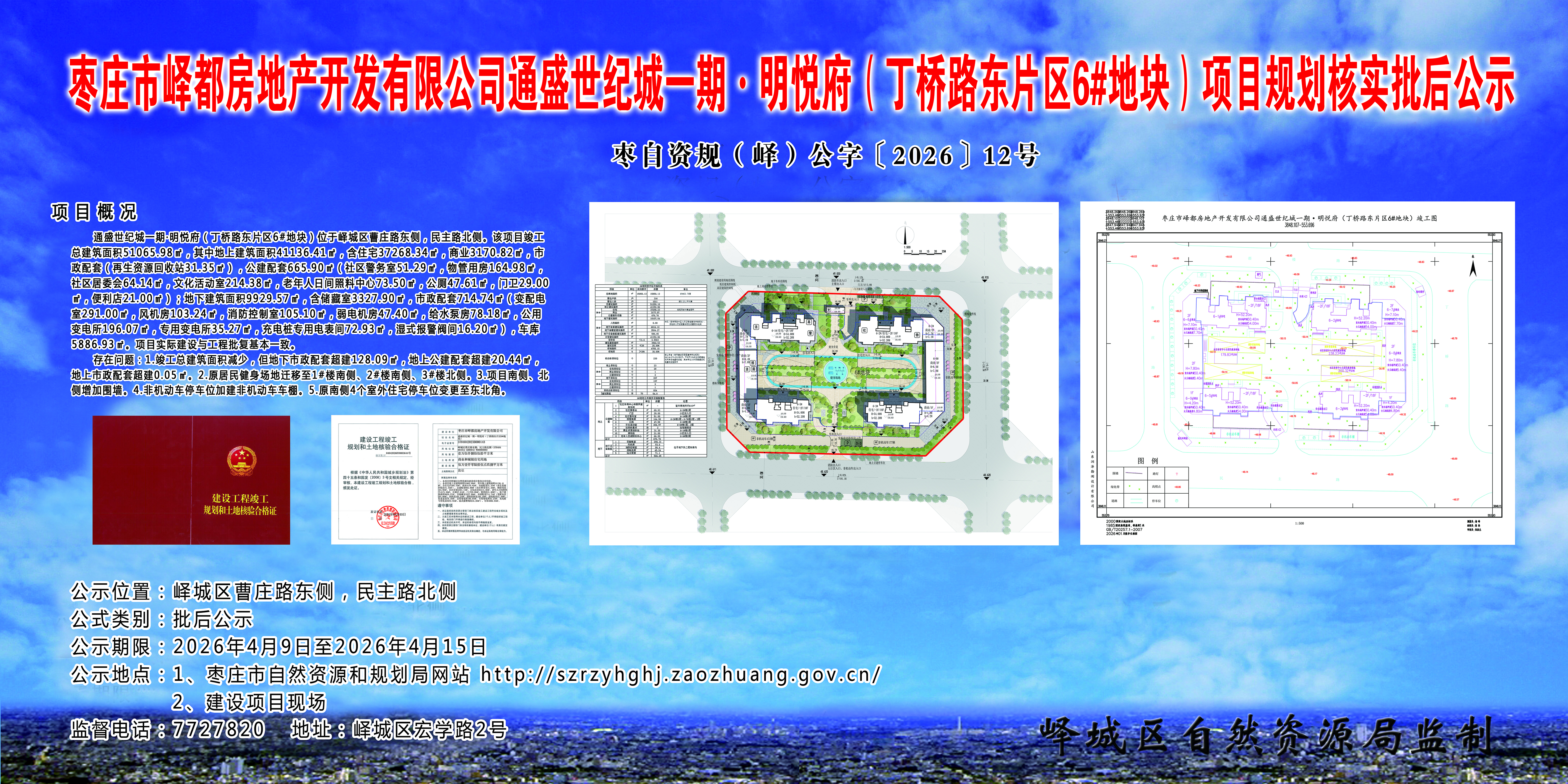 枣庄市峄都房地产开发有限公司通盛世纪城一期·明悦府(丁桥路东片区6#地块)规划核实批后公示
