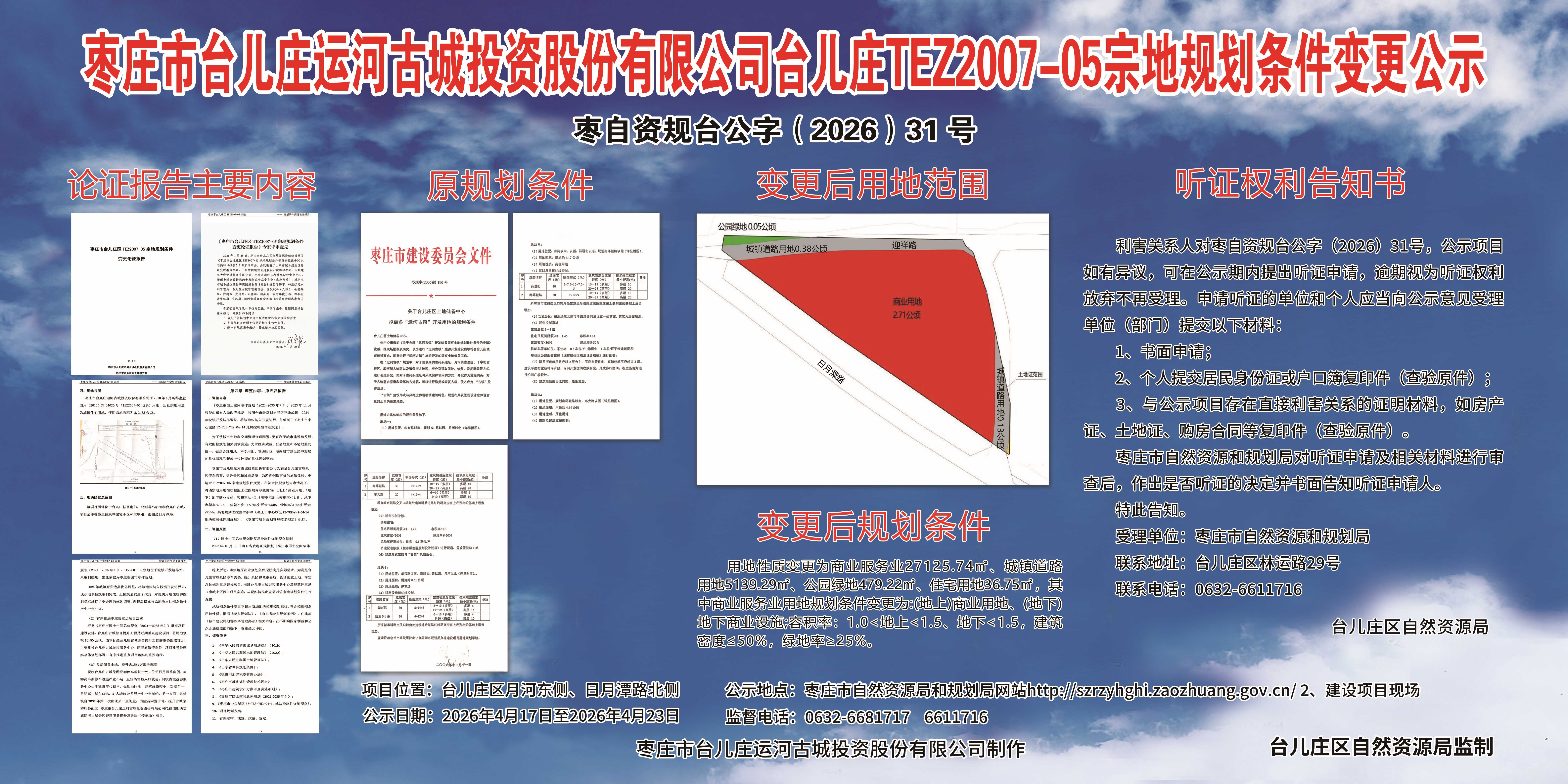 枣庄市台儿庄运河古城投资股份有限公司台儿庄TEZ2007-05宗地规划条件变更公示