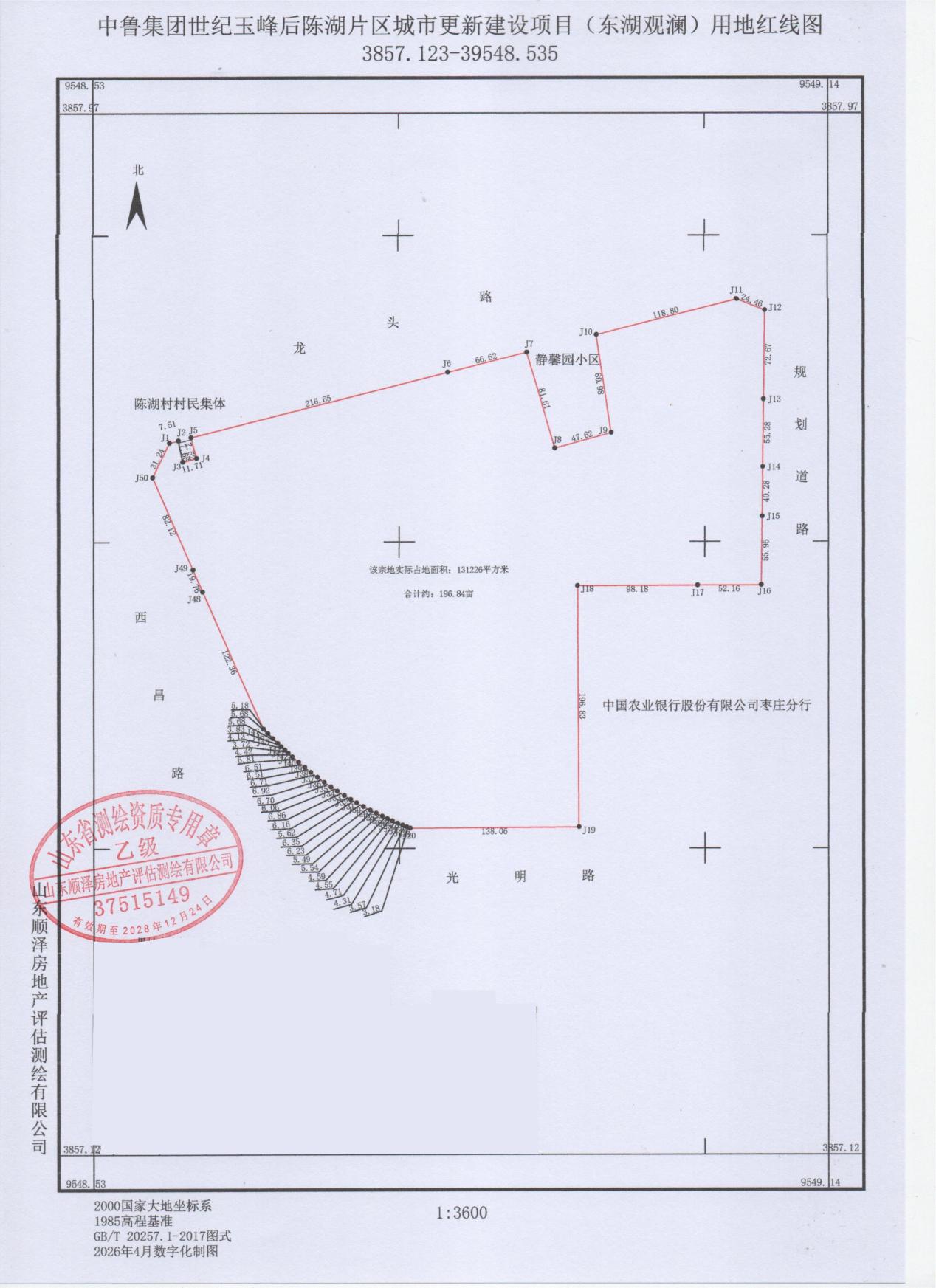 中鲁集团世纪玉峰后陈湖片区城市更新建设项目(东湖观澜)(地块一)《建设用地规划许可证》批前公告