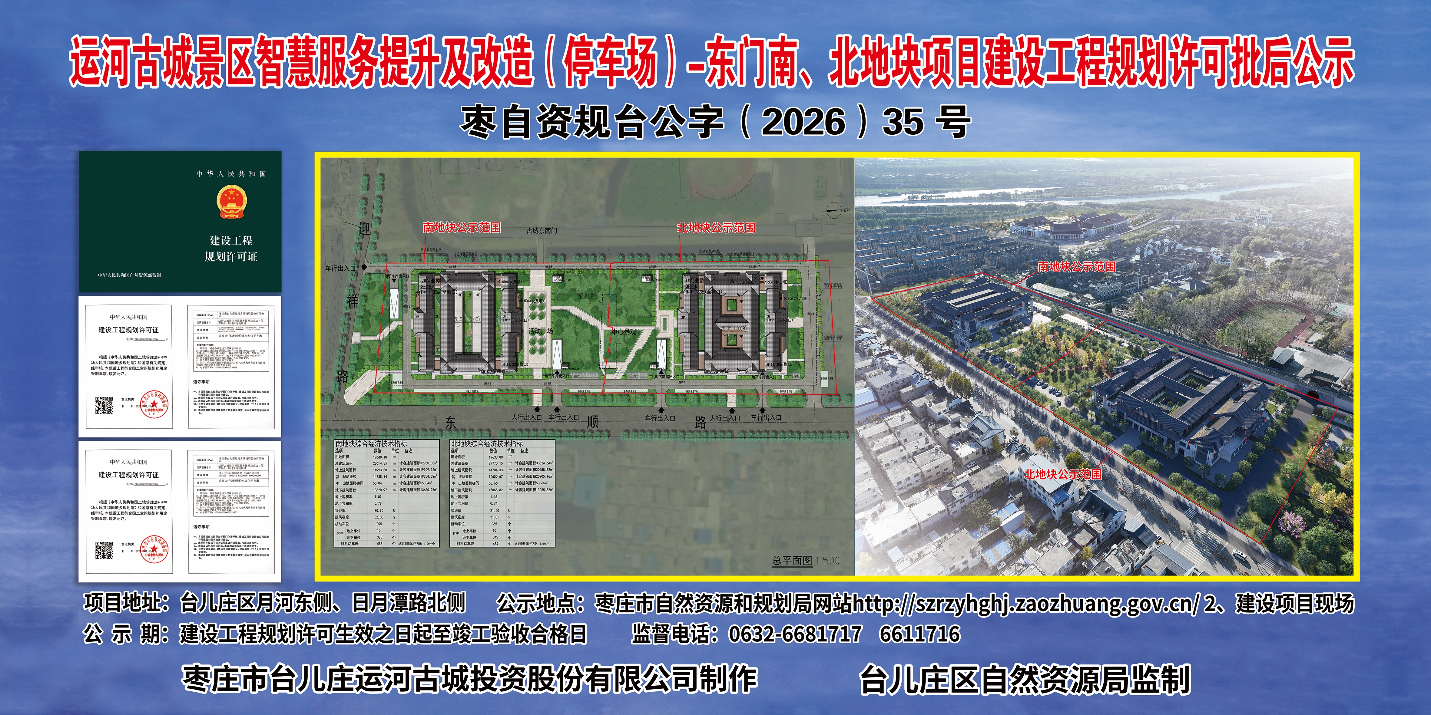 运河古城景区智慧服务提升及改造(停车场)-东门南、北地块项目建设工程规划许可批后公示
