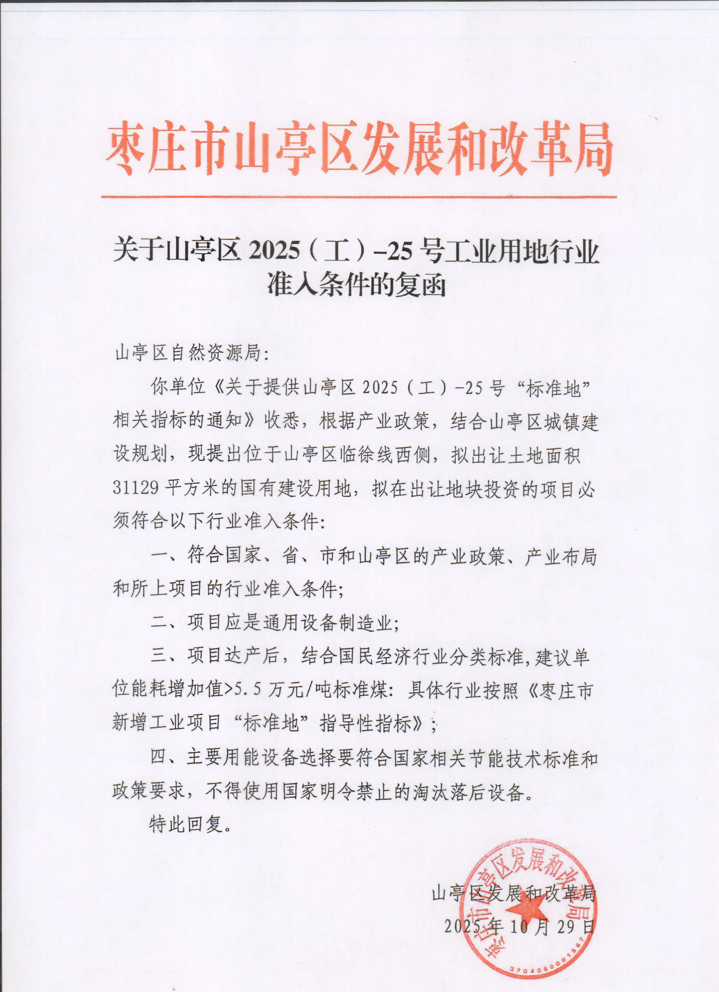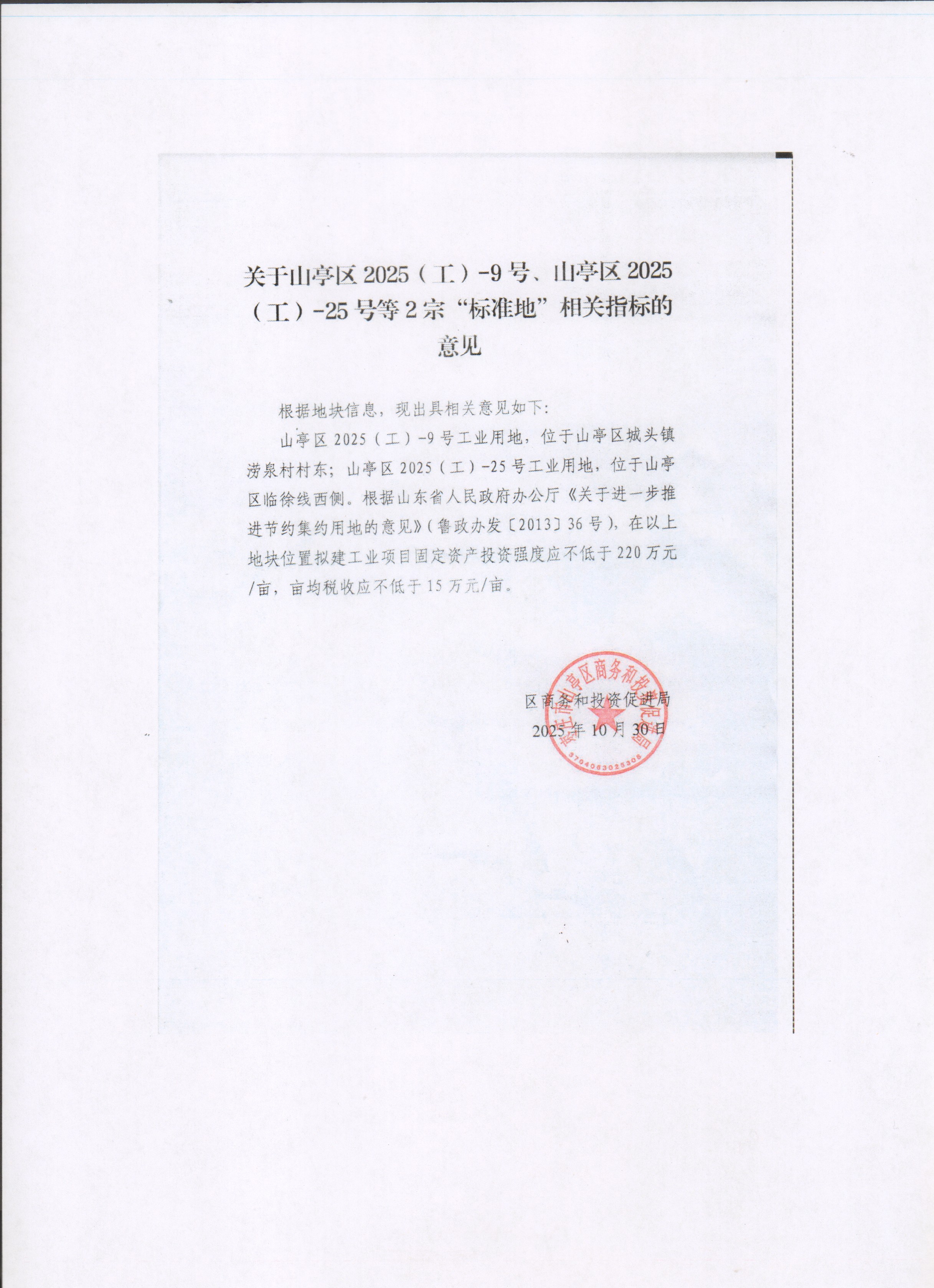 备注:1、根据《枣庄市人民政府关于推进国有建设用地考古前置工作的实施意见》,鉴于地下文物埋藏的复杂性和不可预知性,在该宗土地上开展工程建设过程中如发现文物,应立即停止施工,依法做好文物保护,并及时报告文物行政部门和公安机关;2、受让人签订出让合同之日起60日内交清全部土地出让金;3、上述宗地建设项目准入条件须严格按照山亭区商务和投资促进局、山亭区发展和改革局、枣庄市生态环境局山亭分局相关要求,详情见附件。 | |||||||||||||||||