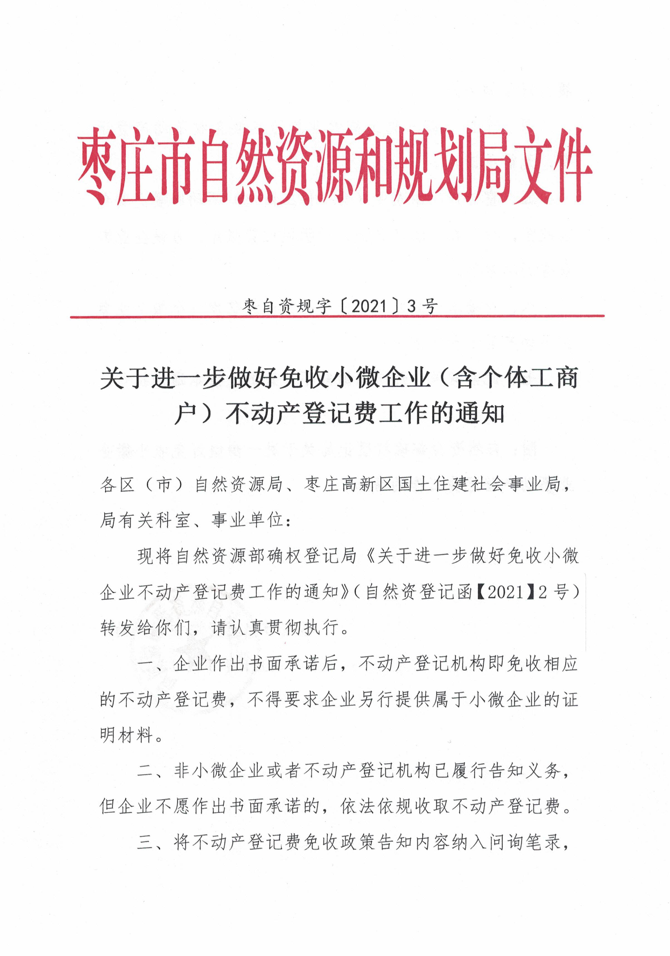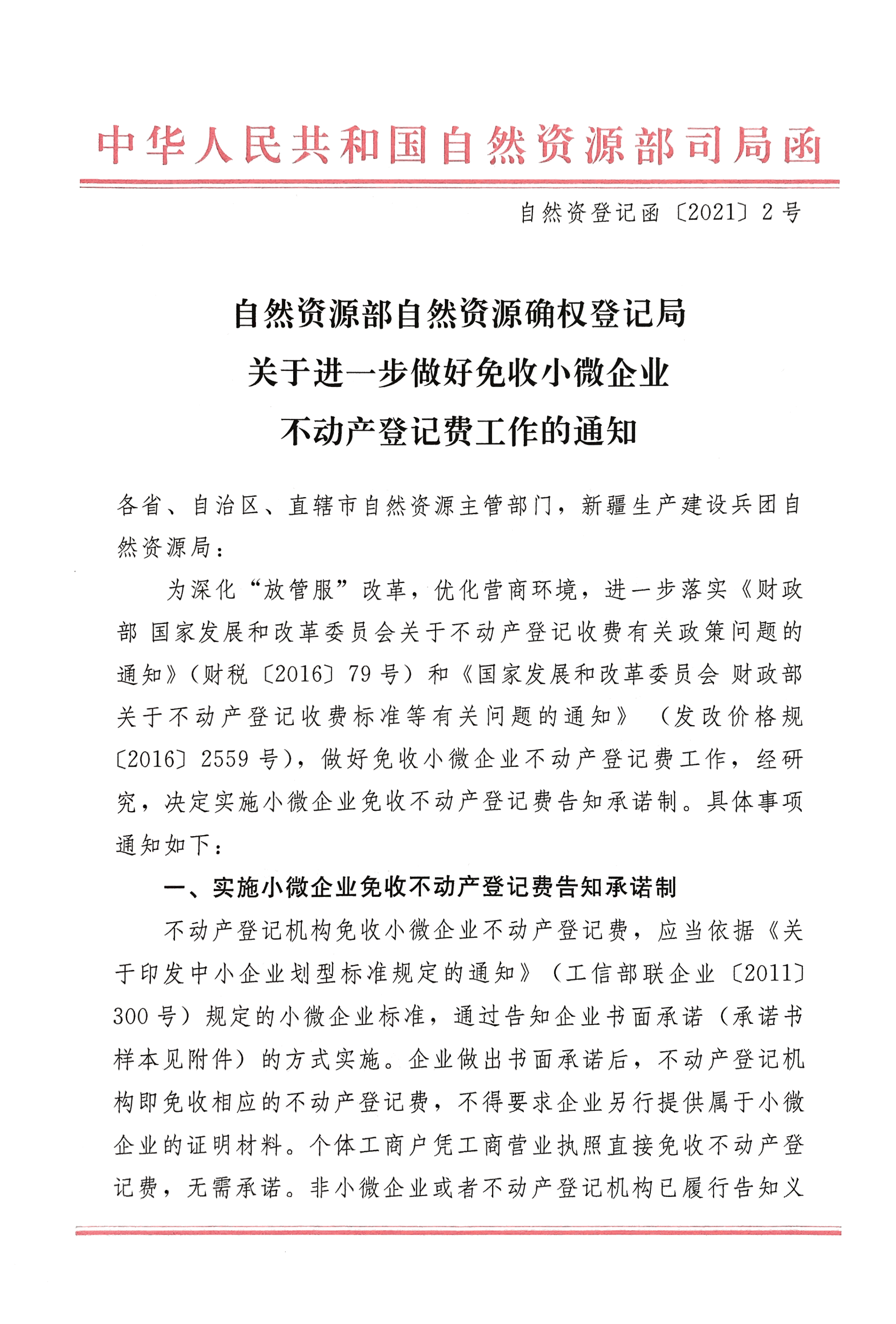 关于进一步做好免收小微企业(含个体工商户)不动产登记费工作的通知