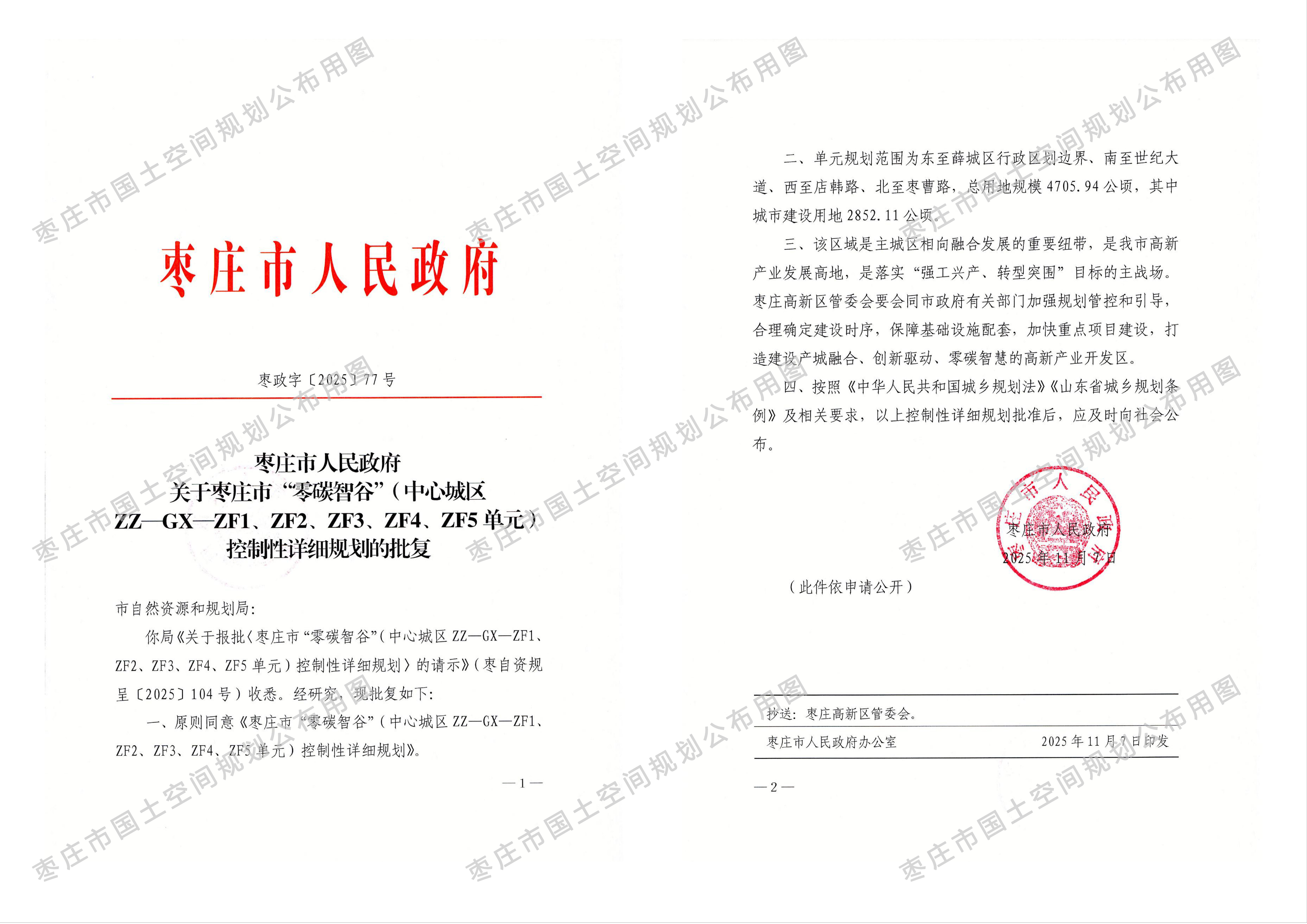 《枣庄市“零碳智谷”(中心城区ZZ-GX-ZF1、ZF2、ZF3、ZF4、ZF5单元)控制性详细规划》 批后公布